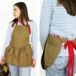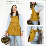 KEY FEATURES: Tough medium-heavyweight canvas • Large pouch pocket • Holster pocket for secateurs • Phone pocket - Bib pocket • Drawstring hem skirt for gathering produce • Adjustable neck tie knots through D-ring • Soft herringbone ties • Strongly constructed • Thoroughly researched & tested design • Sustainable making • õ plastic/no leather • Handmade by Lisa Bennett
