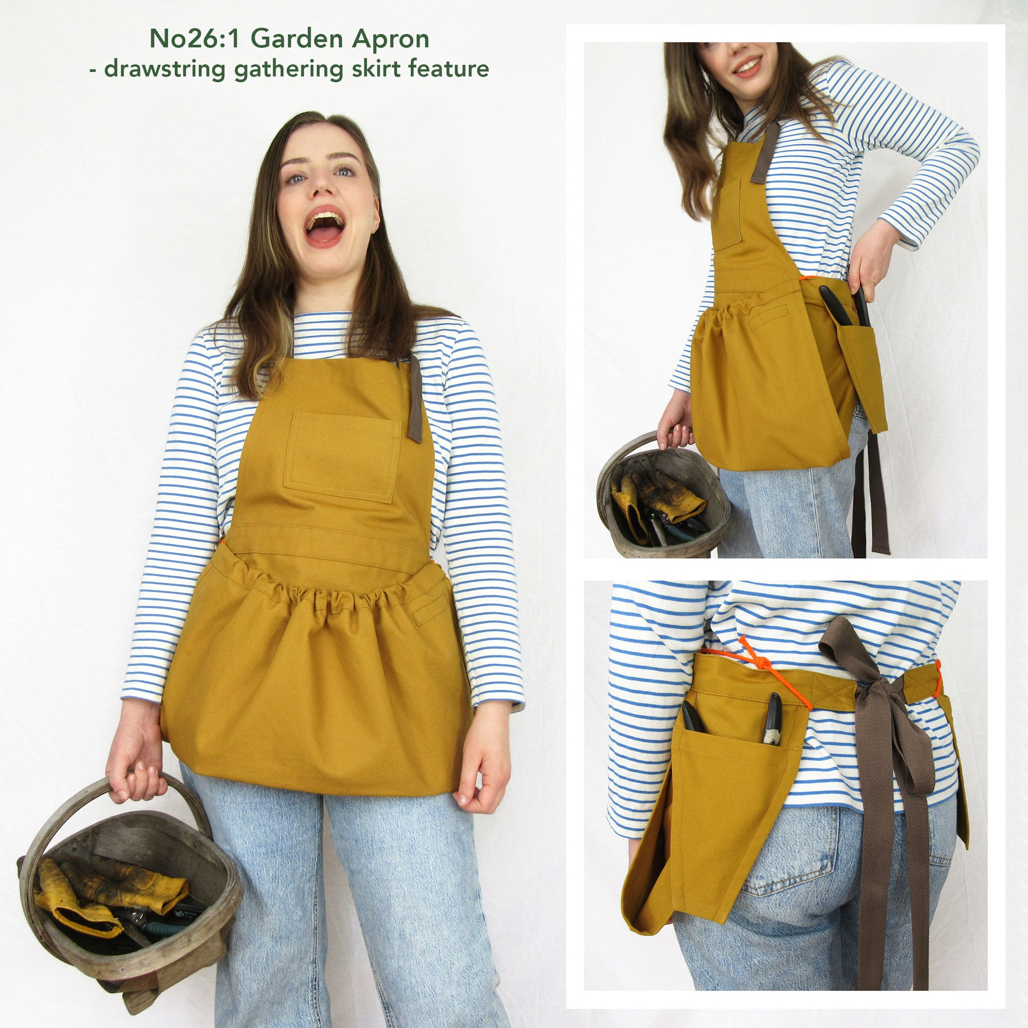 ABOUT: I really appreciate the meditative value of time spent in the garden - this apron came about because I needed special size/shape pockets which only an apron could provide - a pocket for secateurs (because I'm always misplacing them), phone pocket (because my kids insist I'm contactable at all times!), big pocket and pouch for harvesting veg, carrying cuttings or weeds. It's based on the No14:3 apron with it's strong secure waistband to take the weight of stuff carried in the pockets.
