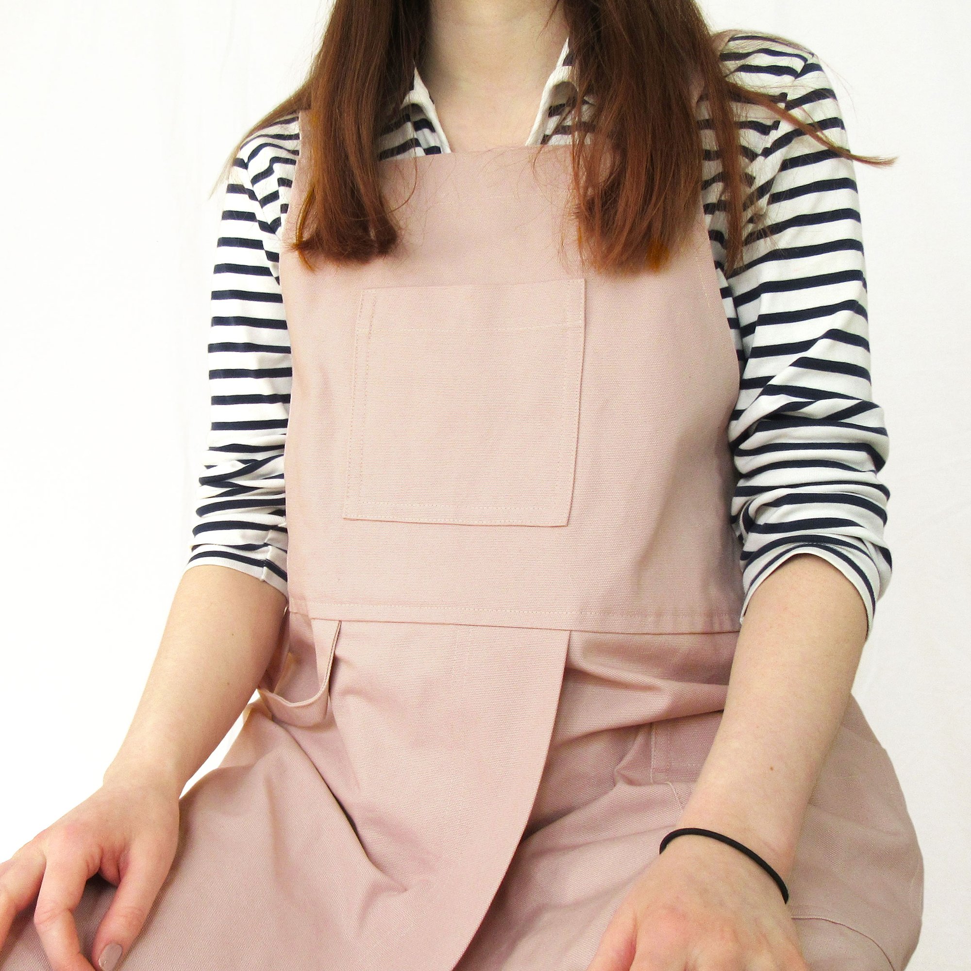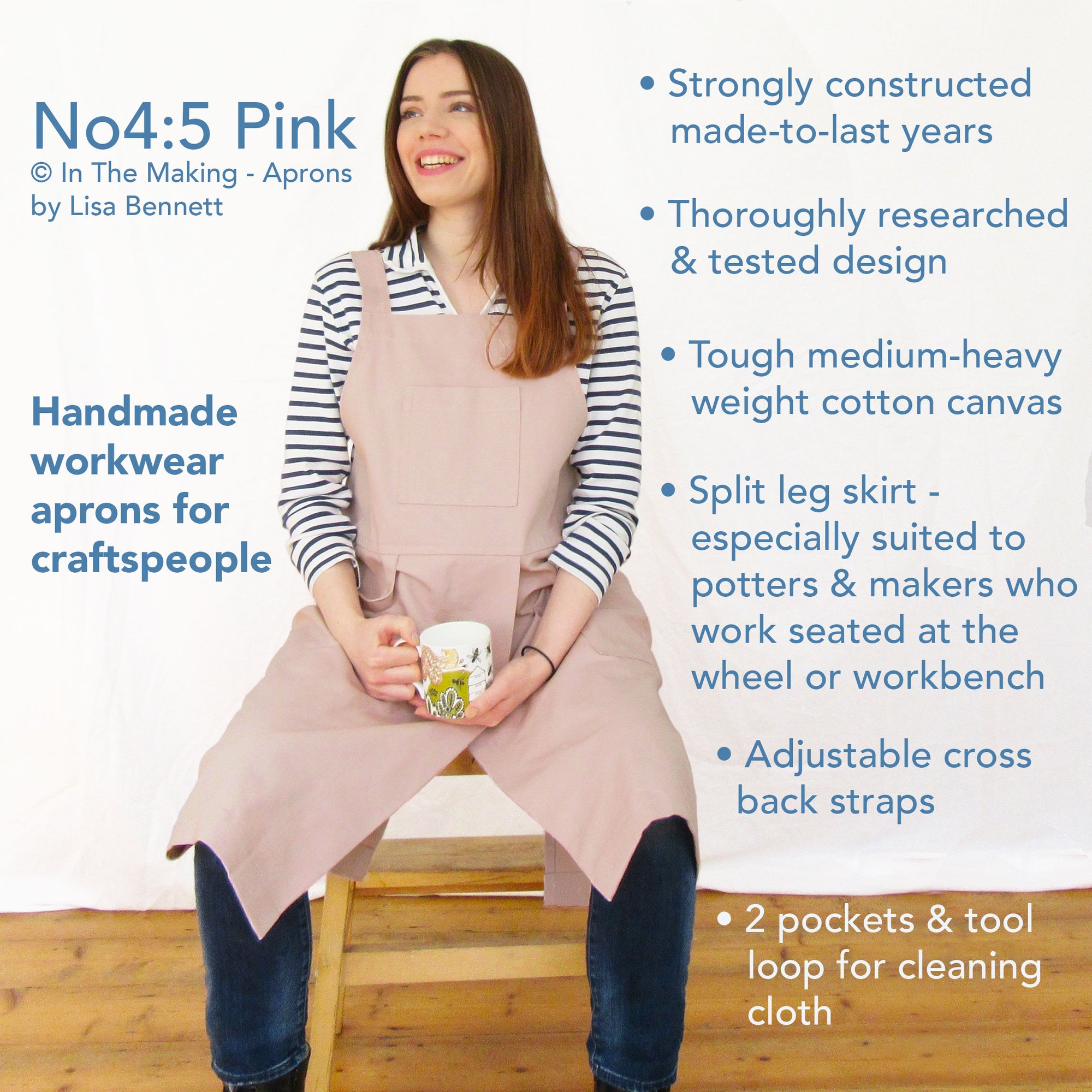 ABOUT: The No4:5 is my bestselling design, it just ticks all the boxes! The design originates from a denim cross back apron I designed to wear myself for my own art/craft practice - which I began to sell online. Soon craftspeople asked for custom versions, potters and jewellery makers asked for a split leg skirt and tool loop etc which I added to my range. More recently I improved the design further with adjustable cross back straps. This particular Warm Beige No4:5 apron has a new feature of contrast red connector tabs.