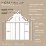 KEY FEATURES: Adjustable cross back design • Pleated skirt • Soft drape medium-weight 100% natural linen • Large bib pocket • 2 Skirt pockets • Fits wide size range • Well constructed • Sustainable small batch making